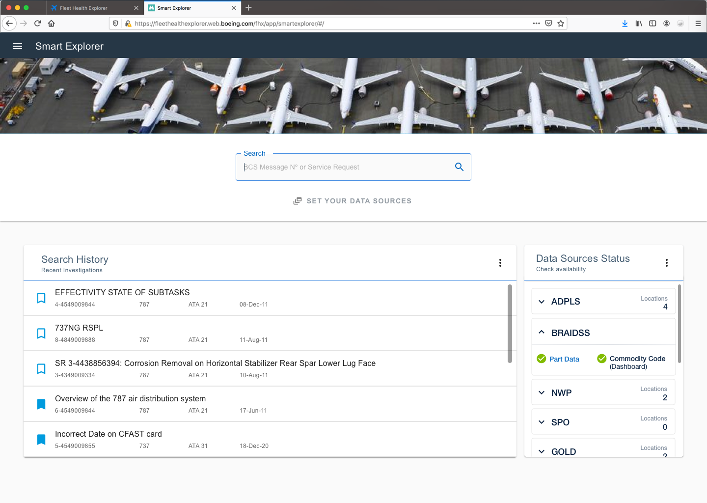 Boeing’s Innovation Labs were building a suite of advanced digital tools (FHX – Fleet Health Experience) to assist maintenance engineers in identifying and solving aircraft issues more quickly. I worked as a Senior UX Designer, focusing on the redesign of Smart Explorer — a tool that consolidated data from over 80 internal databases.