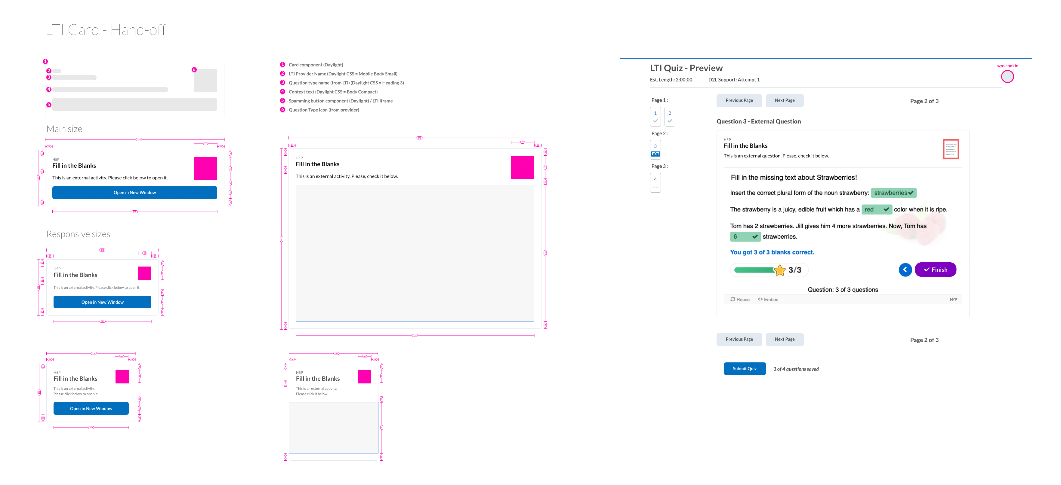- LTI Quizzes: Designed integration for 3rd-party question types with visual distinction and fail-safes; used by Victoria University and later scaled globally