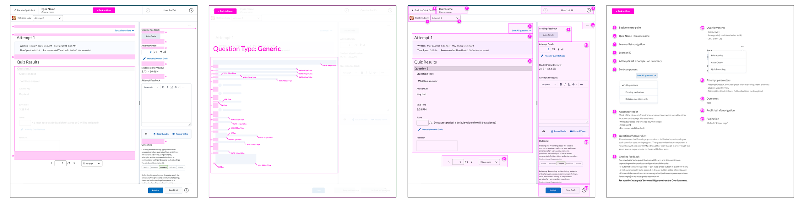 - Created mid- to hi-fi wireframes for LMS modules (Quizzes, Portfolios, Onboarding)